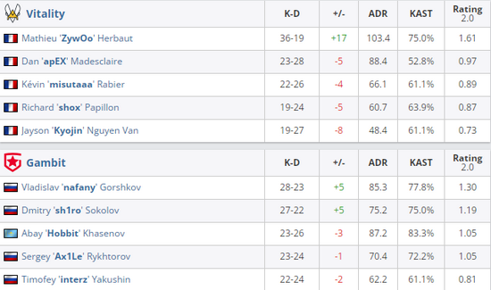 关键选手的表现